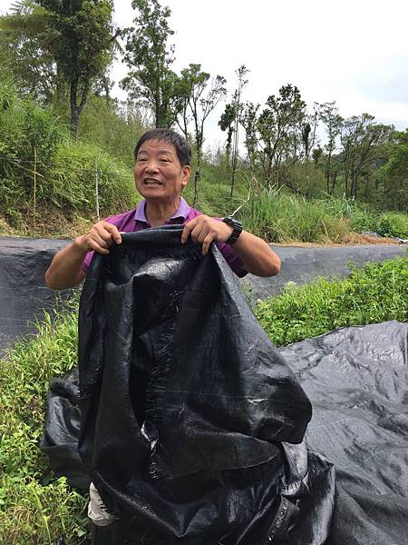 老師手上這塊叫做抑草蓆,蓋在草上面可以讓雜草自然而然的被陶汰,也因為這個抑草蓆,農場裡的蚊蟲非常少。像我這種動不動就被蚊子叮的體質,那天沒有噴防蚊液,居然可以倖免於難。