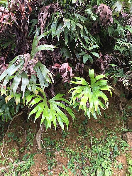 雙扇蕨。在冰河時期(即恐龍時期)就有的植物,喜歡蔭涼潮濕又有陽光的地方(根本就充滿矛盾),所以種植相當不容易。台灣目前就北端及南端可以發現其蹤跡,但又以北部居多。根據此行導覽員解說,在歐洲、美國只有看過書上寫,當親眼所見時簡直視為寶,而台灣人不認識此植物,以為是雜草。