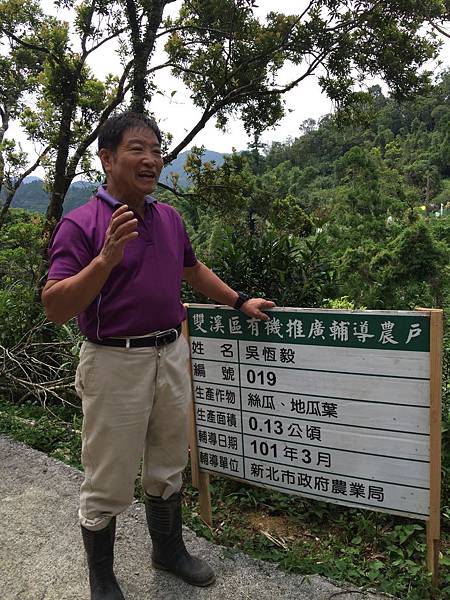 吳恆毅老師本人,一個具親和力,且不吝嗇色的傾其所有讓我們了解所謂的機農場。也是在今天,我才知道,為什麼我們常看到的有機農場都雜草叢生荒蕪一片。 原來有機農場都需要休耕,最長有到休耕三年之久的。真的很佩服主人們對這片土地及我們的食用青菜用心付出及強烈的使命感。