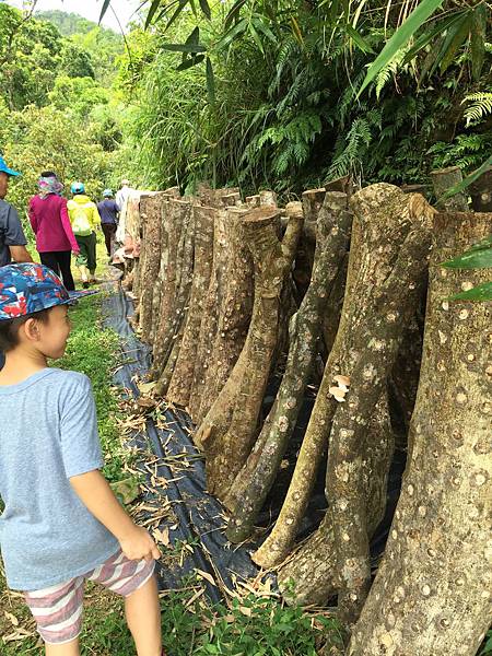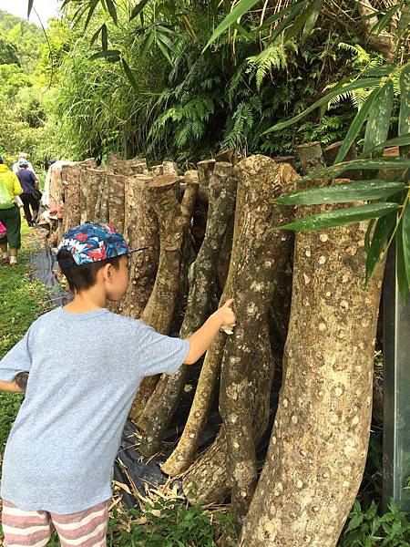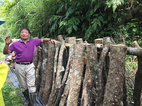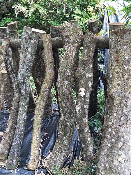 一般我們常看到用真空包培育香菇,這個叫做段木香菇(這種方式培育的香菇更香),是將木頭鑽洞,把菌種打進去後用食用臘封住。吳老師帶我們來參觀時不曉得己經有香菇長出來了,看到我們猛拍照才發現。當他知道時,那種掛在臉上的喜悅與激動完全一覽無遺。