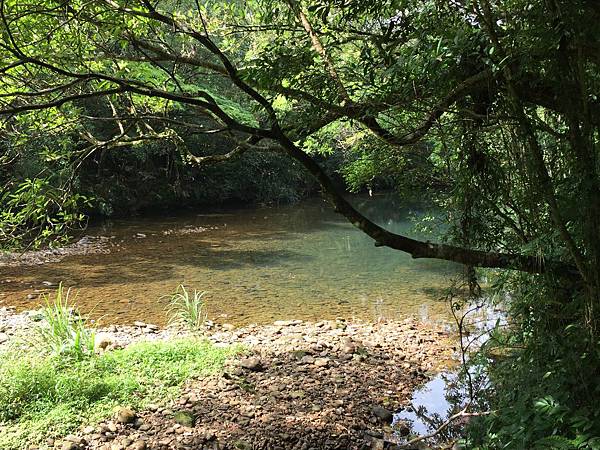 虎豹潭最有名的藍綠相間溪水,要見到綠色溪水得有陽光照射時,沒有陽光照射到的就是藍色溪水。那天很幸運的,在一場大雷雨後陽光露臉,才得以看到這傳說中的景致。但我沒有很認真的拍照,一個人要照顧孩子,手上又一堆東西,實在很可惜。