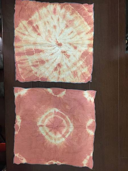 最後,還體驗了染布DIY,綁布方法可隨個人創意,綁好了放入染料鍋中,煮20-30分鐘,放到冷水裡定色。回家把他晒乾,不要洗喔。這樣就變成了一條獨一無二的手帕了。